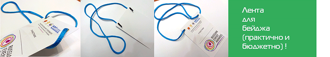 Также предлагаем использовать наши шнуры с установленными наконечниками в качестве ленты для бейджей. При длине в 90 см и диаметре 5 мм стоимость на один бейдж составит 3 руб.